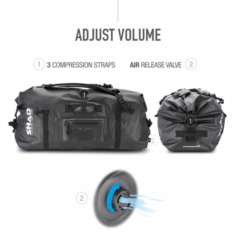 Sac étanche de 80 litres (IPX5) pour le transport de bagages sur les longs trajets. Les sangles de compression et la valve de décompression réduisent le volume total, pour une meilleure stabilité et un confort de portage accru. Ses sangles rembourrées permettent de le porter comme un sac à dos.