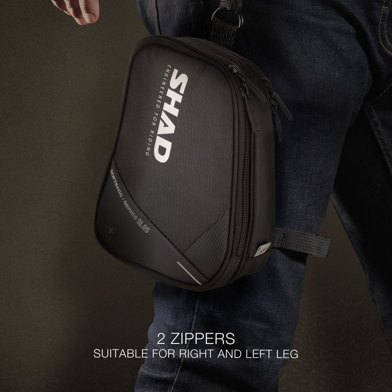 Sacoche de jambe pour motard de grande capacité conçue 100% à Barcelone. Résistant à 1.500 heures d’exposition UV.