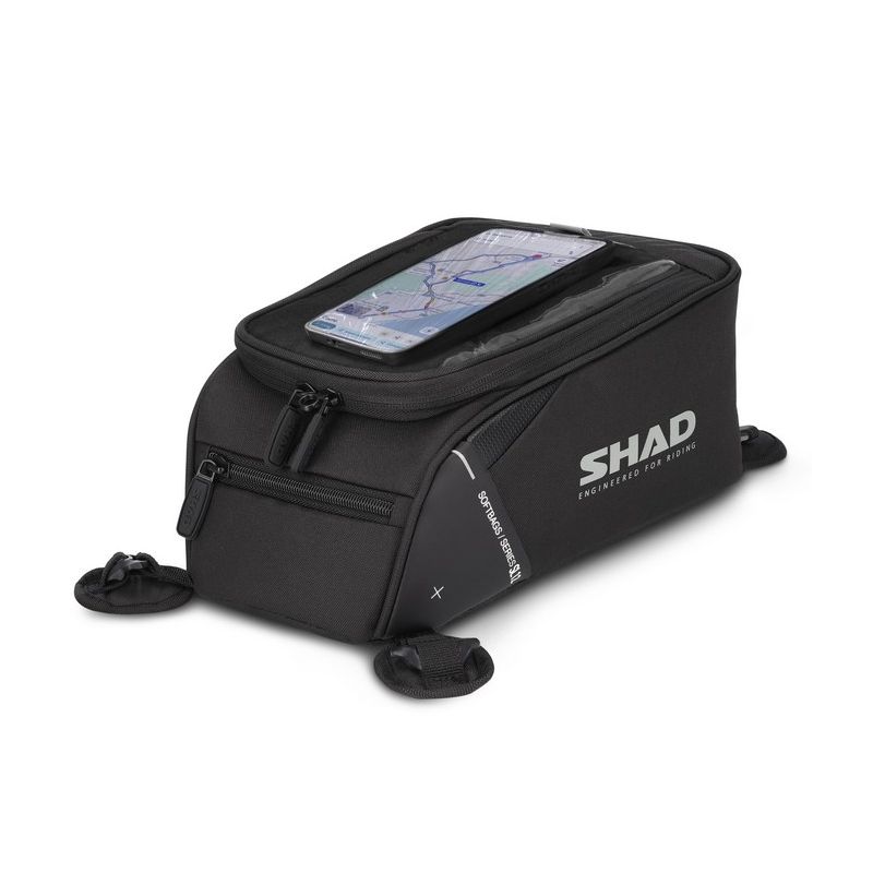 Sacoche réservoir petite avec des éléments réfléchissants pour augmenter la sécurité. Avec un compartiment supérieur avec écran tactile pour Smartphones.