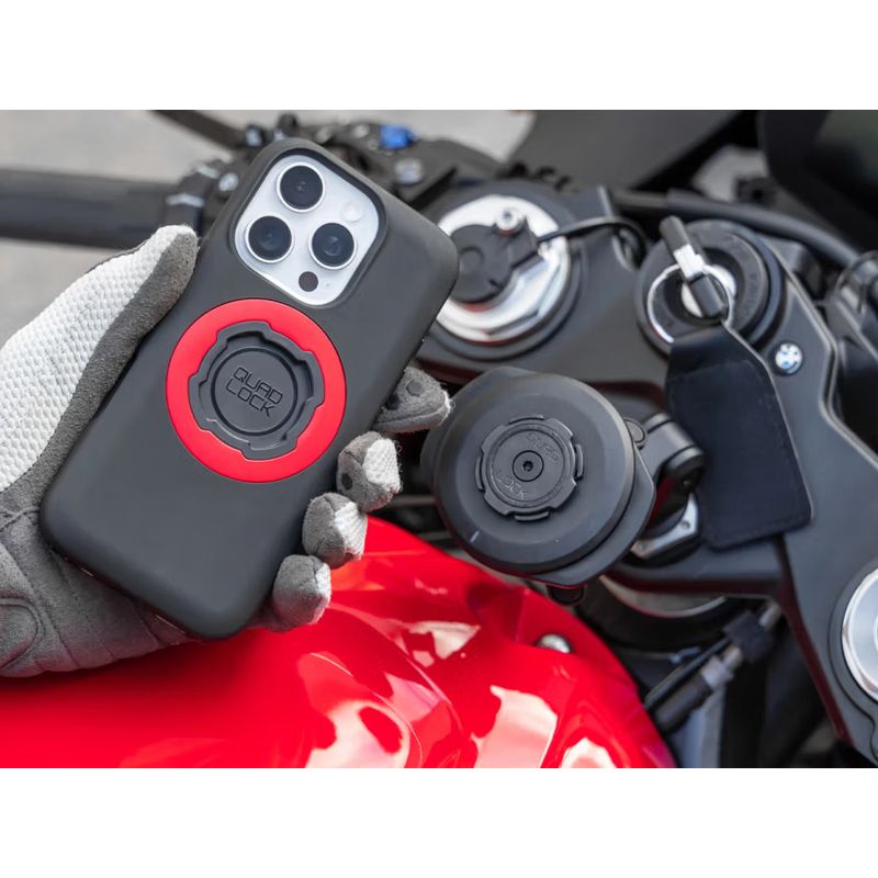 Le support de rétroviseur Quad Lock® vous permet de fixer votre téléphone en toute sécurité sur les tiges de rétroviseur et les petites barres standard des motos et des ...